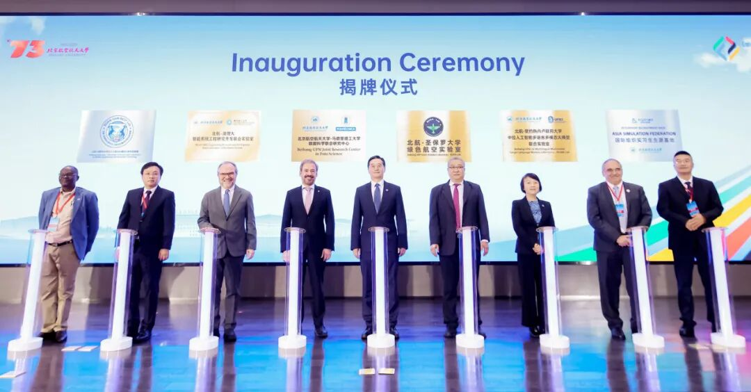 开幕式上还举行了联合实验室揭牌仪式,由王云鹏校长和与会嘉宾为6个联合实验室揭牌。其中,由能源与动力工程学院牵头建设的“北航-圣保罗大学绿色航空实验室”(BUAA-USP Green Aviation Lab,BUGA Lab)瞄准绿色航空能源与动力技术,未来将成为北航与全球伙伴共享资源、协同创新的重要实体平台,依托北航国新院在杭州校园实体化建设。