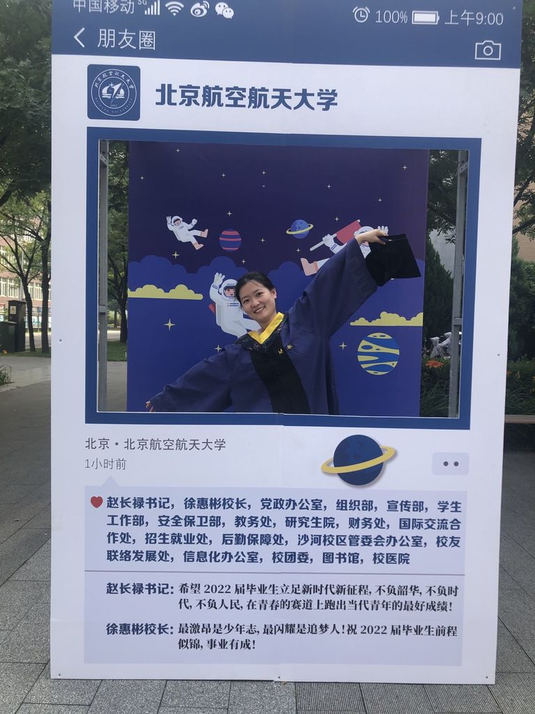 动力学院2019级硕士研究生,导师李挺副教授,研究方向为激光无线能量传输技术,研究生期间担任学院2019级硕士研究生辅导员,在校期间获评“北航优秀研究生”、北航校级“三好学生”、北航校级“优秀学生干部”、北航2022年“优秀毕业生”等荣誉称号。
